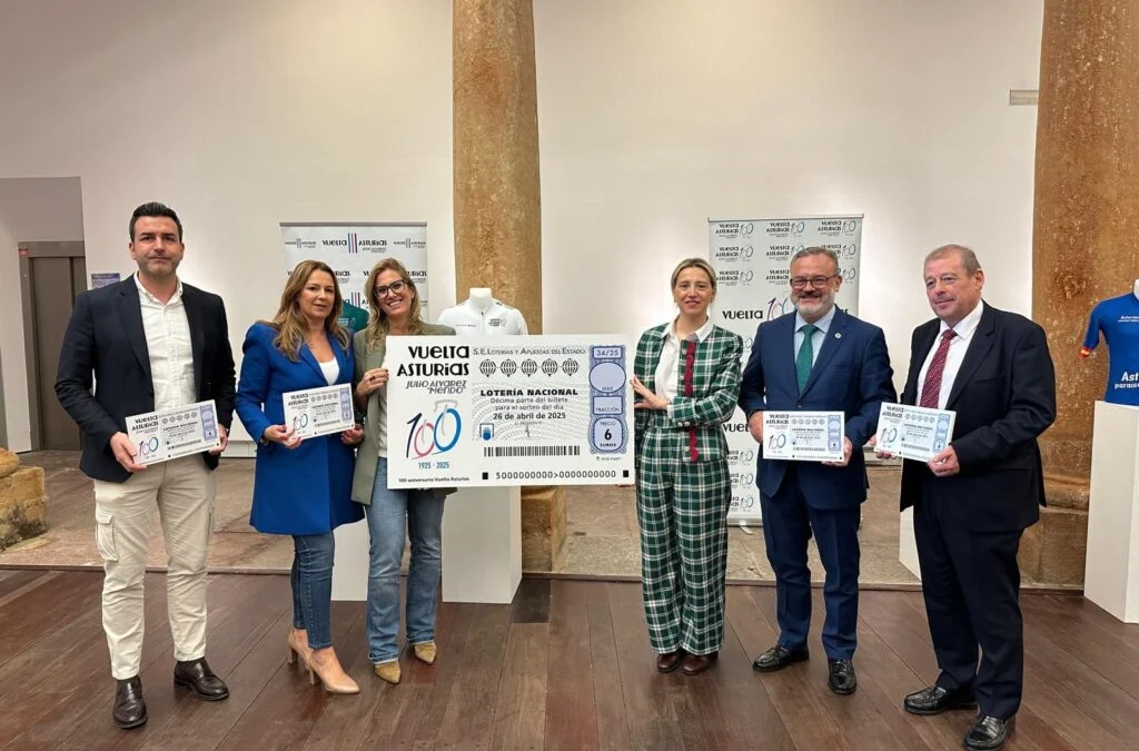 Esta mañana, la directora general de la Vuelta Ciclista a Asturias, Cristina Mendo, la delegada comercial de Loterías y Apuestas del Estado en el Principado de Asturias, Cristina Morales, la viceconsejera de Turismo del Principado de Asturias, Lara Martínez, el concejal de Turismo del Ayuntamiento de Oviedo, Alfredo Quintana, el director comercial de Hyundai Asturdai, David Álvarez y el subdirector del diario La Nueva España, Evelino G. Palacio, han presentado el décimo de Lotería Nacional del próximo sábado día 26 de abril, que está dedicado al centenario de esta prueba ciclista.